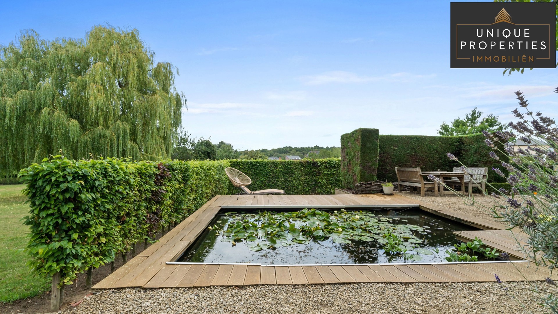 Unique Properties verkoopt deze totaal gerenoveerde prachtige villa, gelegen in het idyllische Hageland. Geniet van een uitzonderlijk perceel van 46a50ca, omgeven door groen en met een perfect onderhouden tuin die elk seizoen tot zijn recht komt — een echte droomtuin voor levensgenieters met terrassen en gezellige vijver.